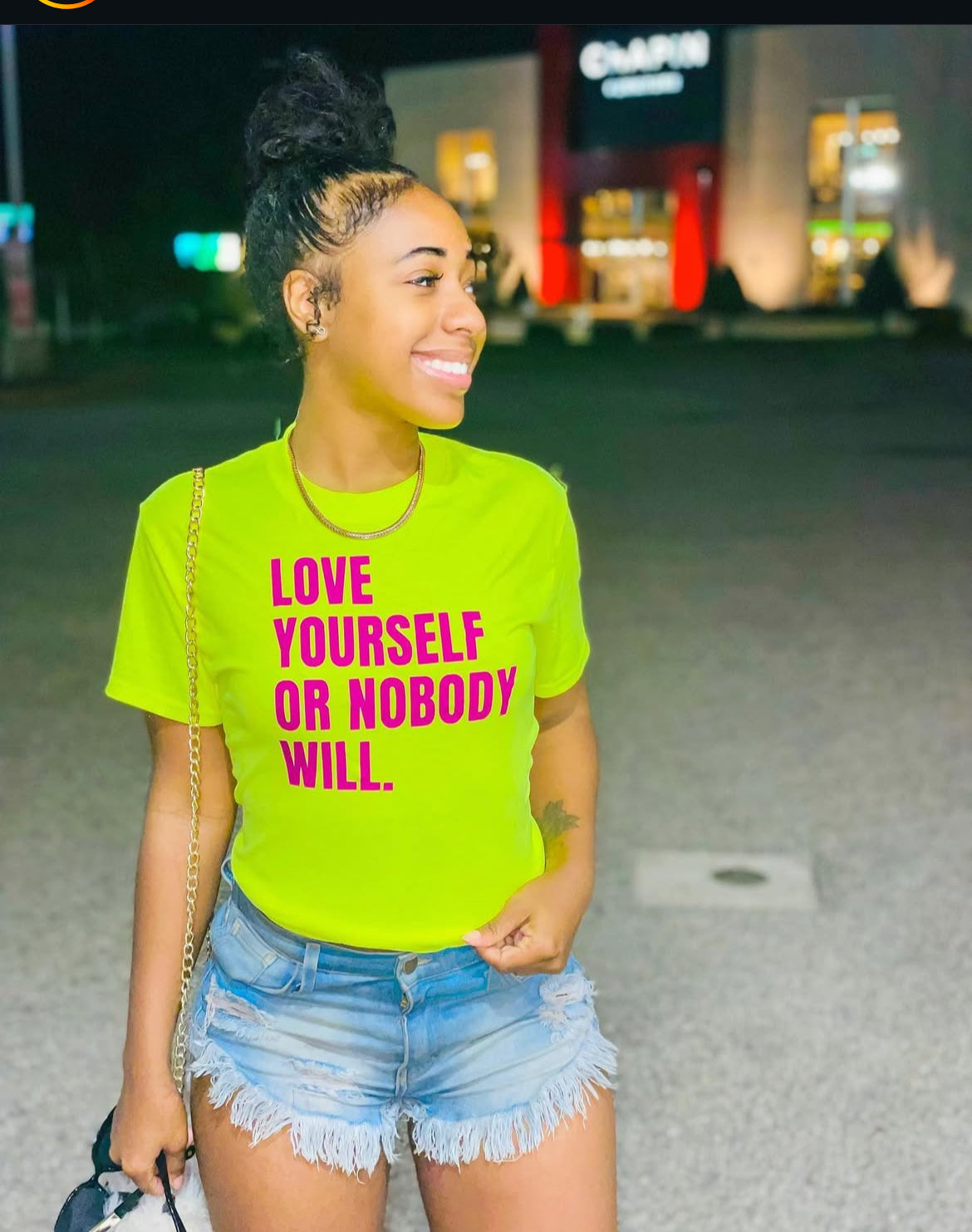 Sis, this one’s for YOU. 💖 Rock this green tee with pink letters and remind the world (and yourself) to always love yourself first. Confidence? Check. Vibes? Check. Self-love energy? Absolutely.